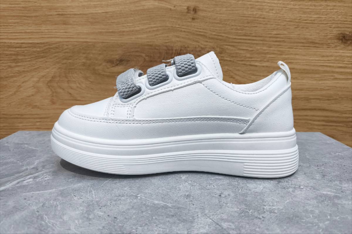 کفش ونس سفید بچه گانه K SHOES رنگ بند طوسی کد ۵۰۴